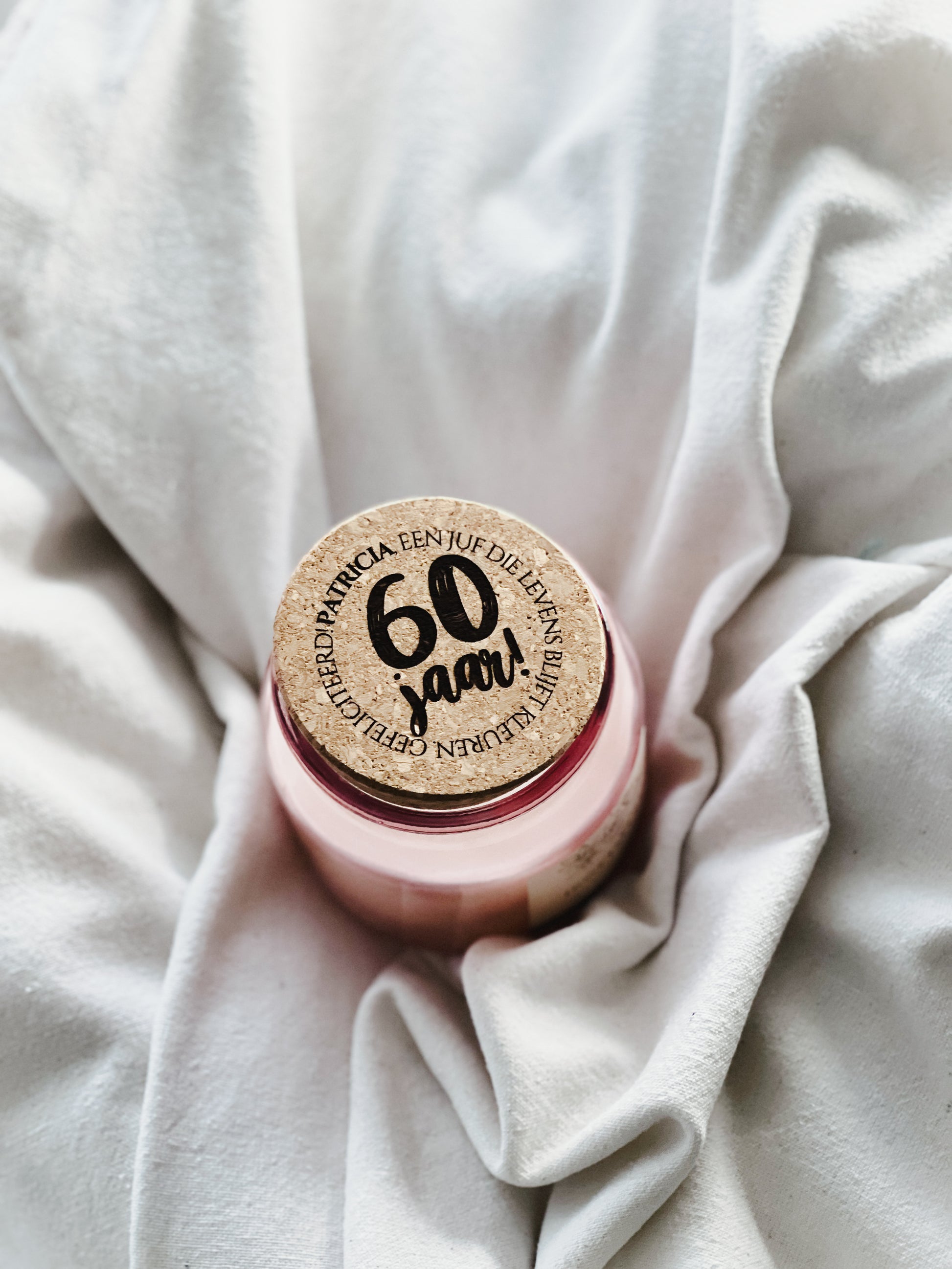 Deze luxe gepersonaliseerde kaars is het ultieme verjaardagscadeau om een dierbare mee te verrassen. De kaars wordt geleverd in een stijlvolle glazen pot met een deksel van kurk, waarop een unieke gravure naar keuze wordt aangebracht. Denk aan een naam, een speciale datum, of een persoonlijke boodschap die het moment extra bijzonder maakt.