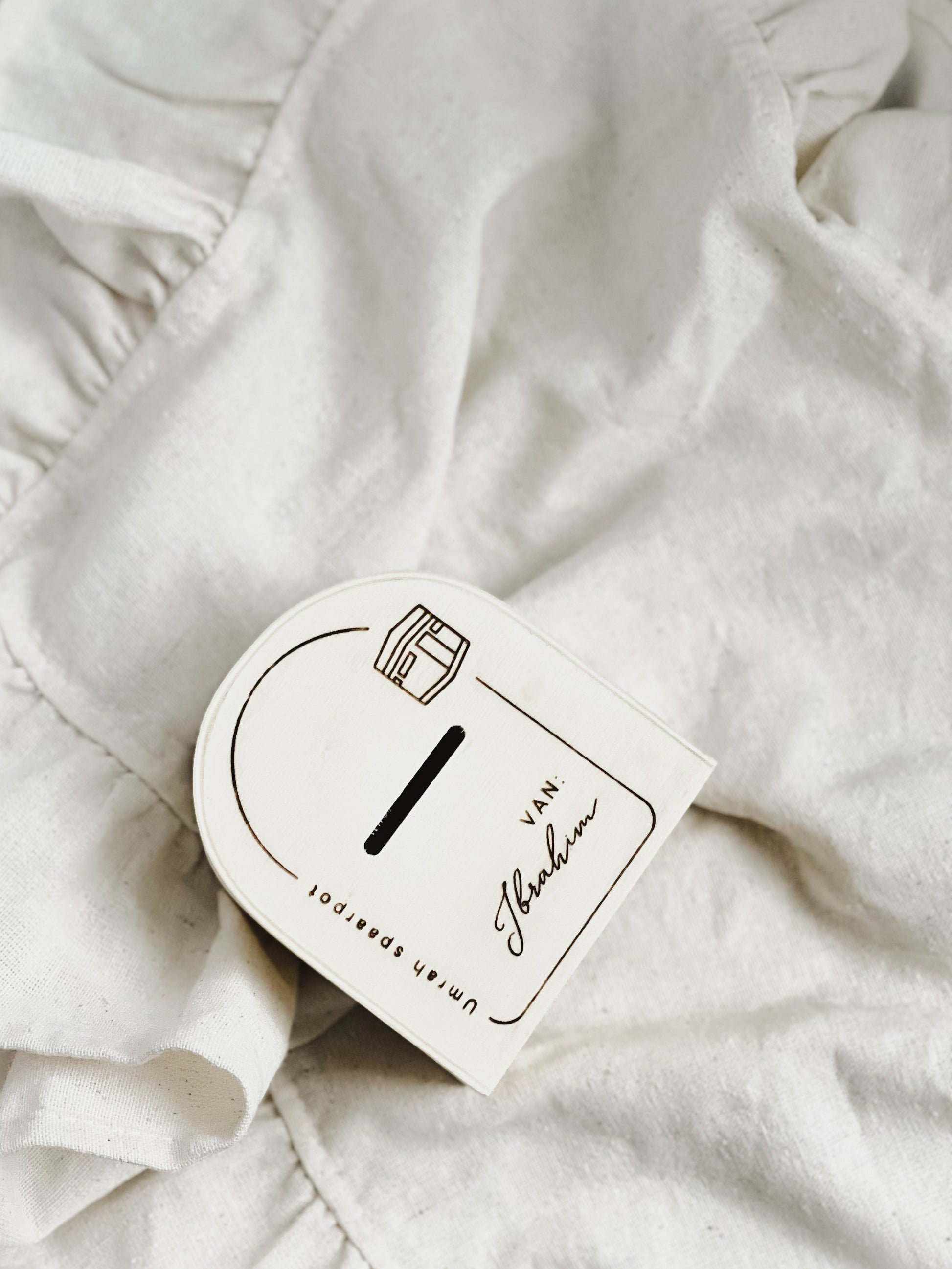 Maak sparen voor een Umrah extra speciaal met deze unieke houten spaarpot!