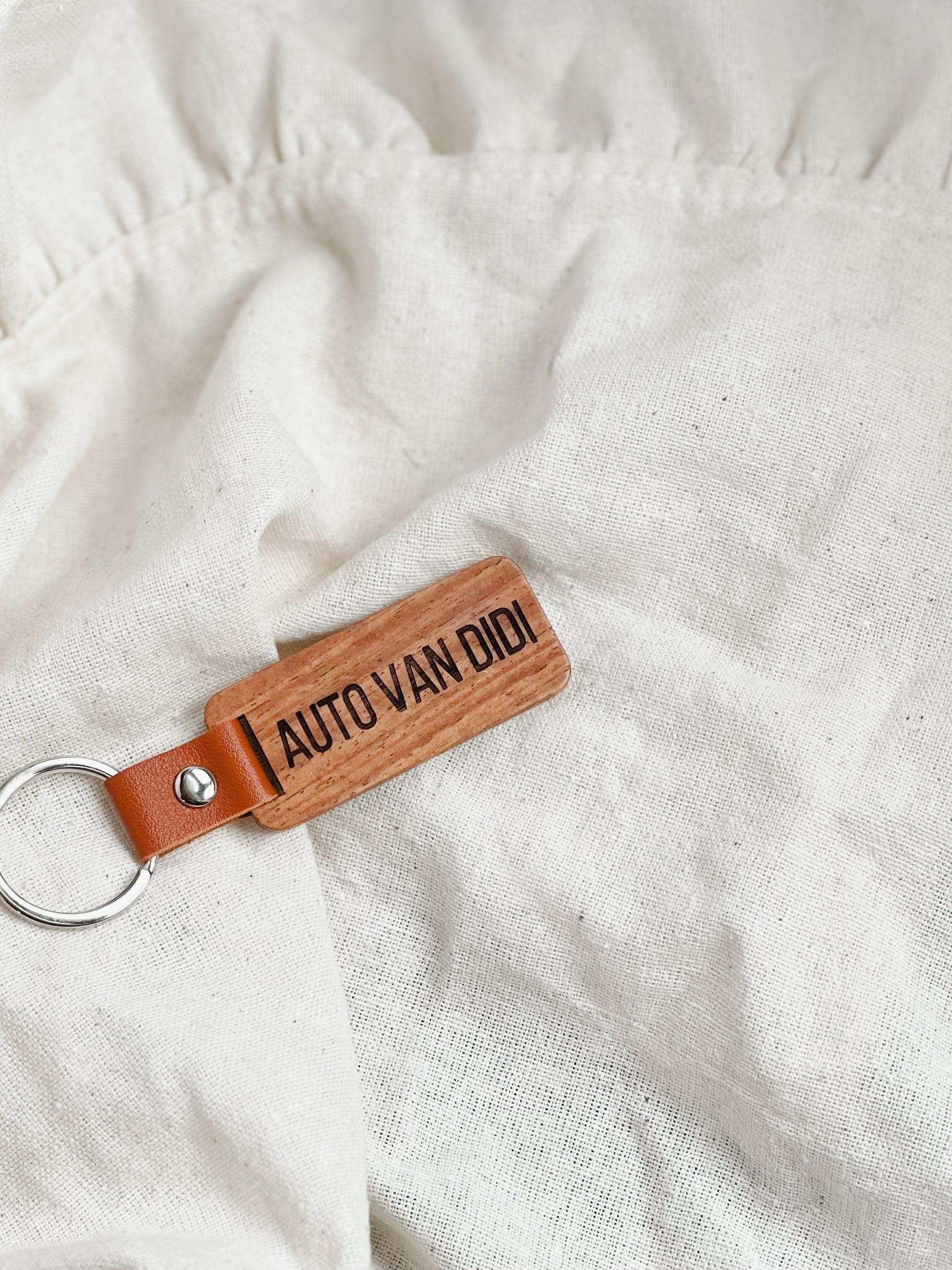 Laat je sleutels opvallen met deze verfijnde sleutelhanger van hout en imitatieleer. Bestel vandaag nog en maak je sleutels tot een uniek en stijlvol accessoire!