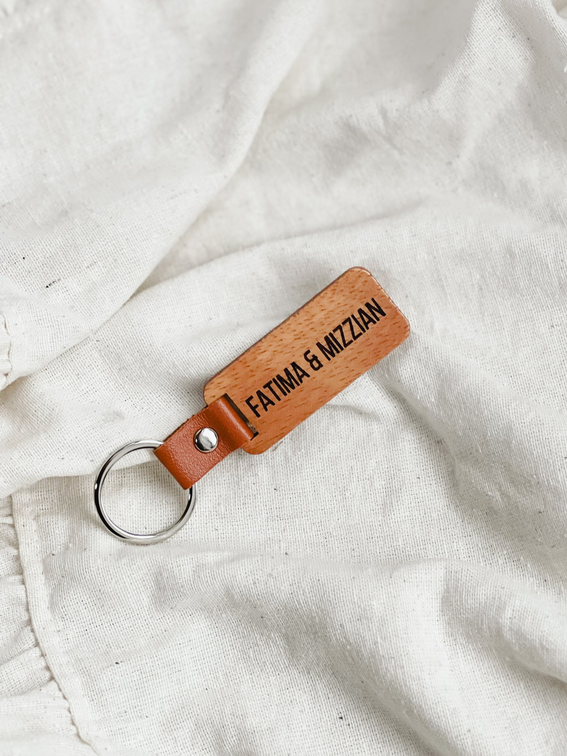 Rechthoekige Gepersonaliseerde Sleutelhanger van Hout en Imitatieleer