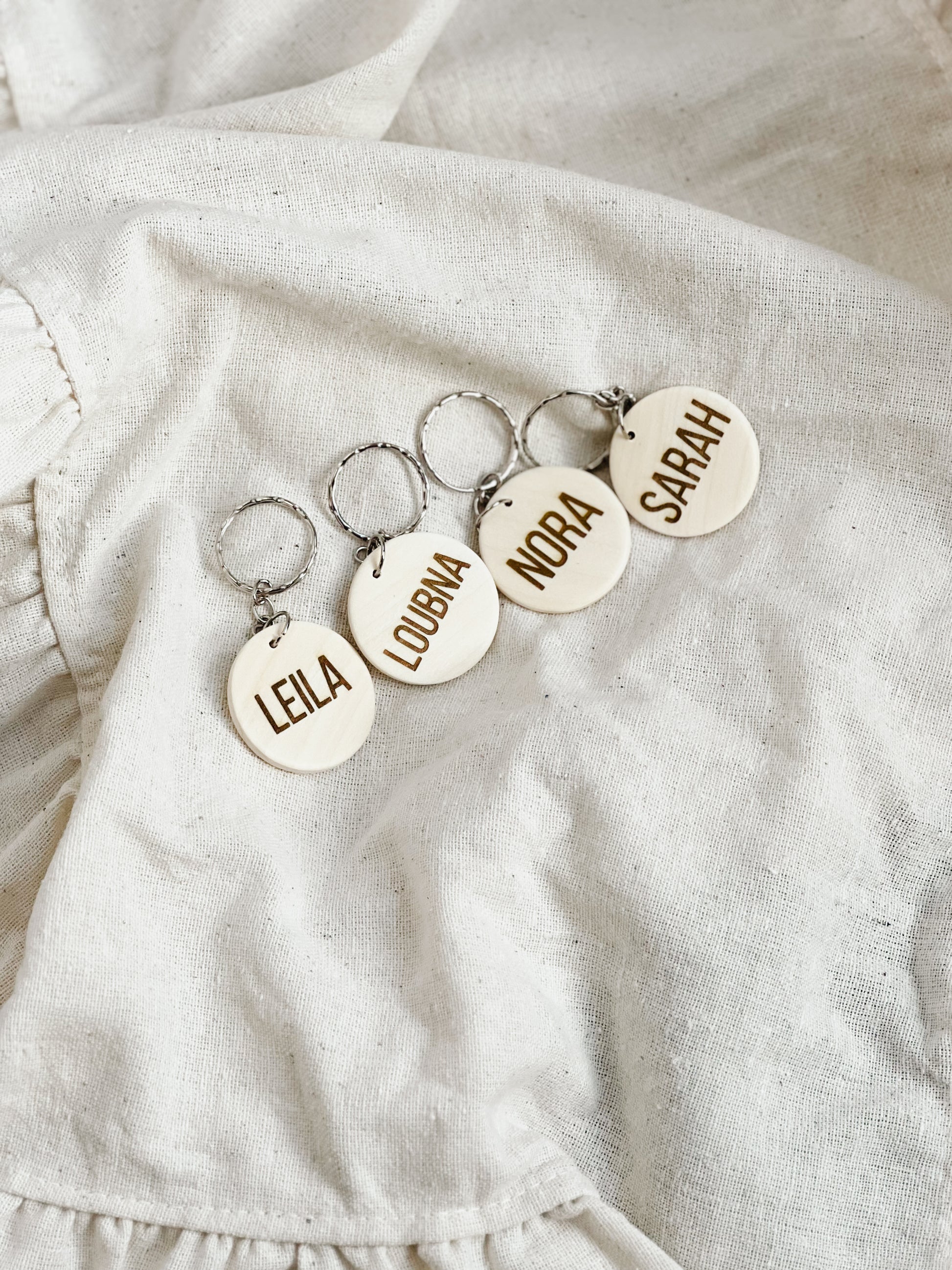 Voeg een persoonlijke touch toe aan je sleutels met onze ronde, gepersonaliseerde houten sleutelhangers. Perfect als cadeau voor een speciale gelegenheid of als unieke accessoire voor jezelf! Elke sleutelhanger wordt met zorg en precisie gegraveerd, waardoor deze een prachtig, op maat gemaakt aandenken is.